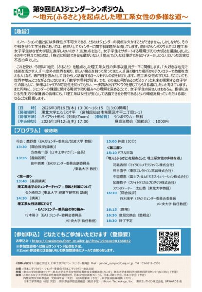 [3/19]第9回EAJジェンダーシンポジウム ~地元(ふるさと)を起点とした理工系女性の多様な道~