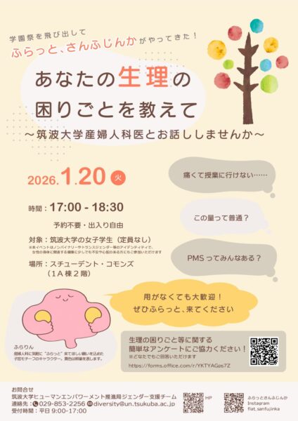[1/20]「あなたの生理の困りごとを教えて~筑波大学産婦人科医とお話ししませんか~」開催