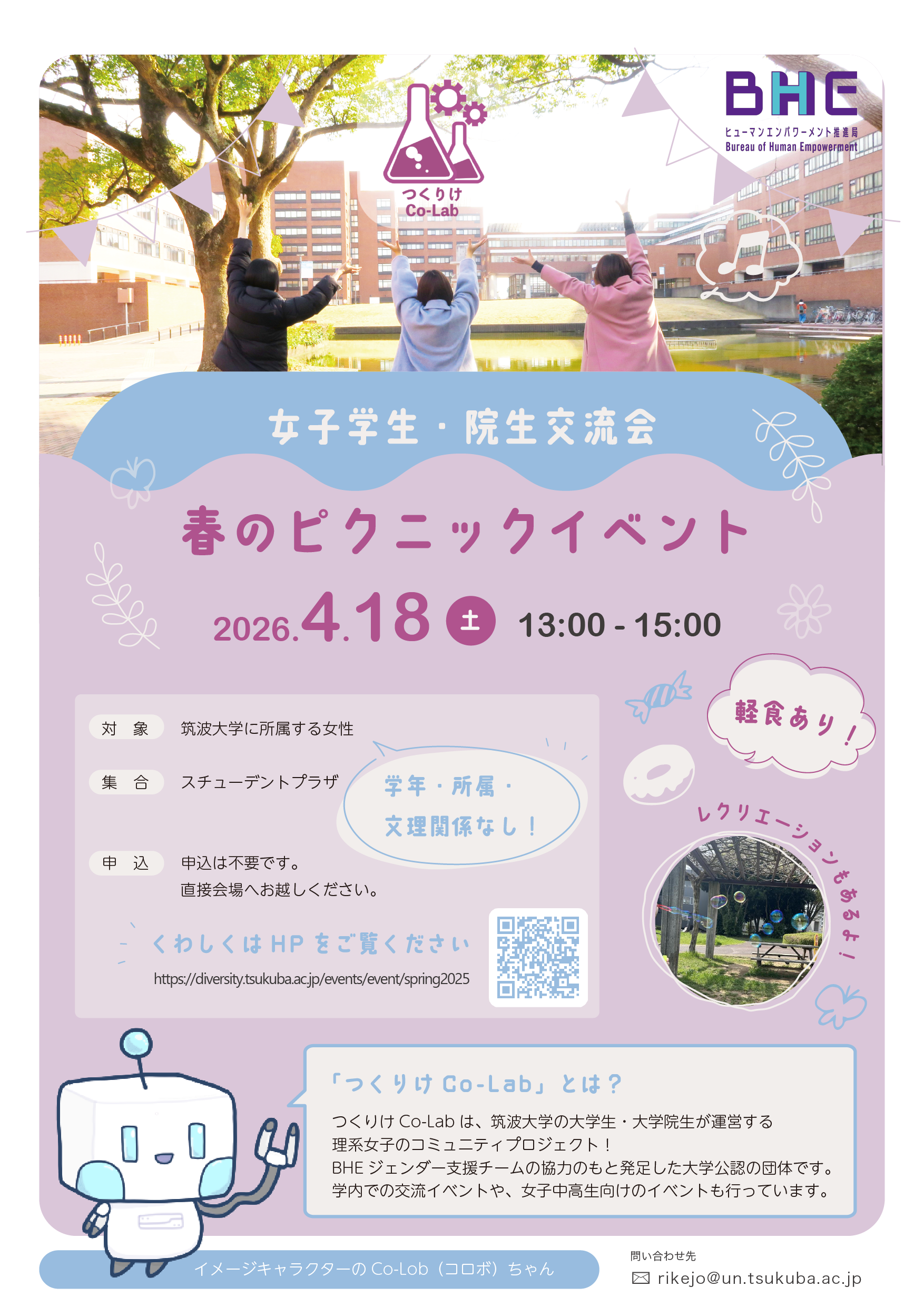 [4/18]女子学生・院生交流会「春のピクニックイベント」開催