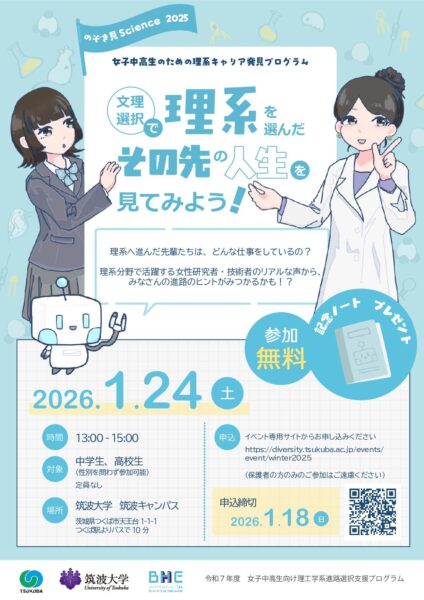 TOP > イベント > [1/24]中高生のための理系キャリア発見プログラム「のぞき見Science2025~文理選択で理系を選んだその先の人生を見てみよう~」開催 > つくりけ冬イベントちらし_修正版